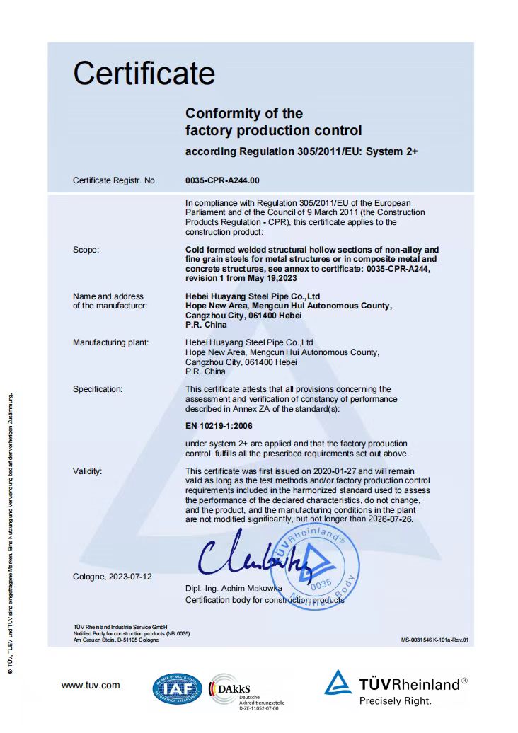 河北華洋鋼管有限公司公司創(chuàng)建于2005年,注冊資金5億元,公司占地面積1000余畝,固定資產12億元,年銷售收入近100億元,現有員工600余人。“華洋牌"高頻直焊鋼管被評為“河北省名牌產品”,年生產能力可達260萬噸,2024年河北華洋鋼管有限公司榮獲河北省百強民營企業(69位),河北省百強制造業(57位)榮譽稱號。